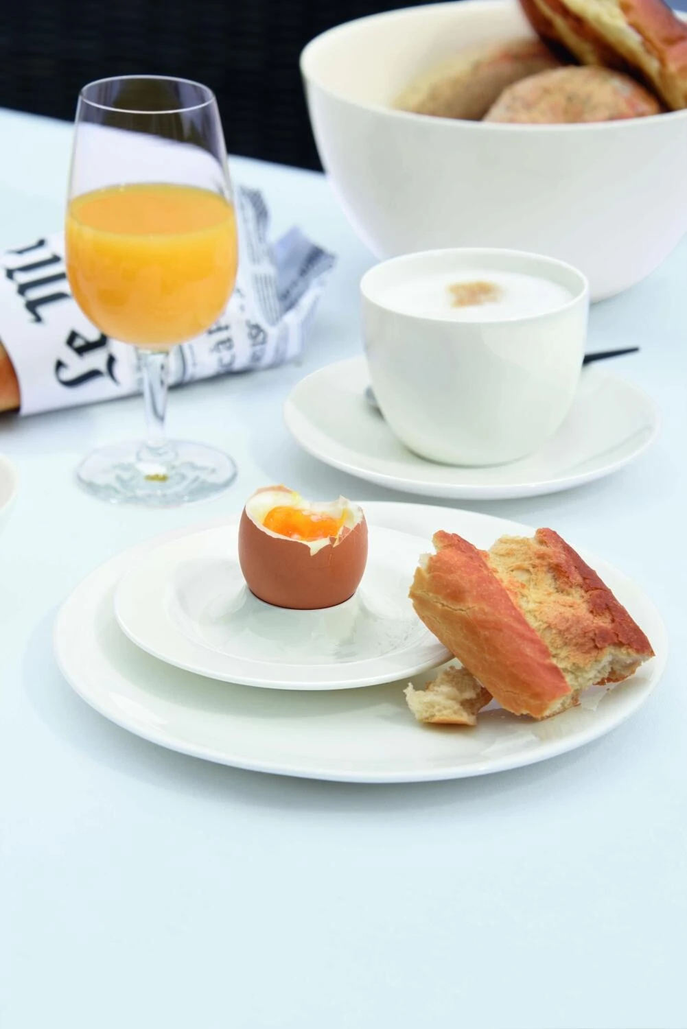 ASA aus der à table Serie für den alltäglichen Gebrauch und auch für besondere Frühstücksmomente. Trotz minimalistisch gehaltenem Design strahlt das Geschirr der à Table Reihe Eleganz und Zeitlosigkeit aus! Die Form des Eierbechers eignet sich ideal zum direkten Auffangen der Eierschalen. Das verarbeitete Fine Bone Porzellan aus China ist für seine besondere Härte bekannt.