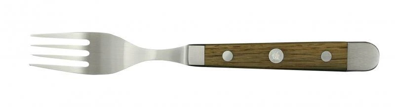 Aus einem Stück handgeschmiedete Klinge aus Chrom-Vanadium-Molybdän Messerstahl. Weiterverarbeitung in über 40 manuellen Arbeitsgängen. Die Griffschalen bestehen aus dem Eichenholz über 80 Jahre alter Weinfässer, das durch die lange Reife nahezu unverwüstlich geworden ist. Die Klinge ist rostfrei, eisgehärtet, handgeschärft – der Griff nicht spülmaschinenfest. Das sind die