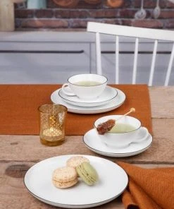 Die zwei eleganten und maritimen Dekore in Dunkelblau und Gold können nach Belieben miteinander oder dem weißen Dekor kombiniert werden. So kann der kleine Snackteller sowohl als Untersetzer als auch als Deckel für die Tassen und Schalen verwendet werden.