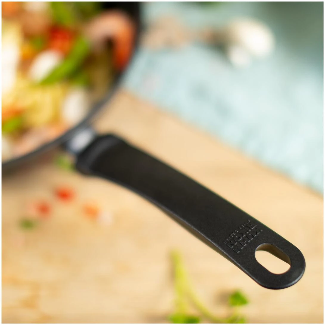 Dank seiner mit Titan-Partikeln verstärkten 3-lagigen Antihaftbeschichtung überzeugt der Easy Induction Wok mit seiner Langlebigkeit und der erhöhten Verschleissfestigkeit. Der Wok besitzt eine vollflächige Induktionsronde, um einen bestmöglichen Wirkungsgrad auf einem Induktionskochfeld zu erzielen.
