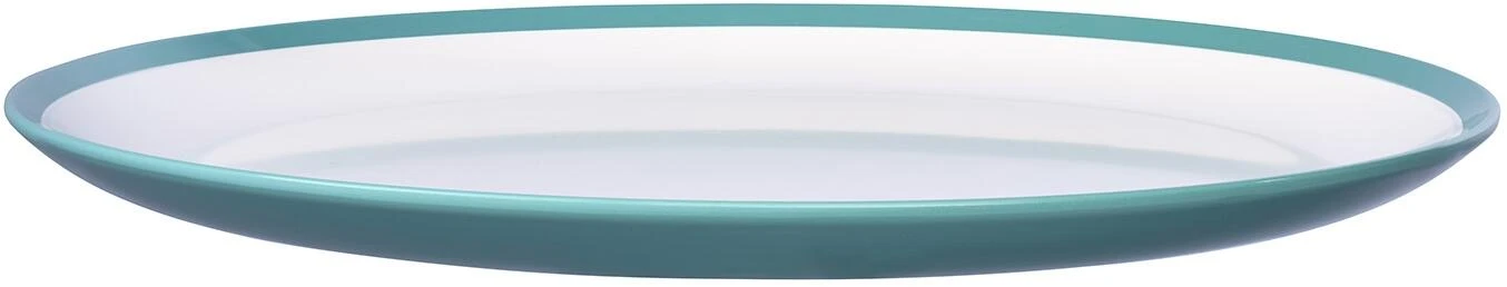 Essteller Flow in der Farbe Nordic green. Der robuste Teller aus Melamin ist stoßfest, ganz einfach übereinander stapelbar und spülmaschinenfest.