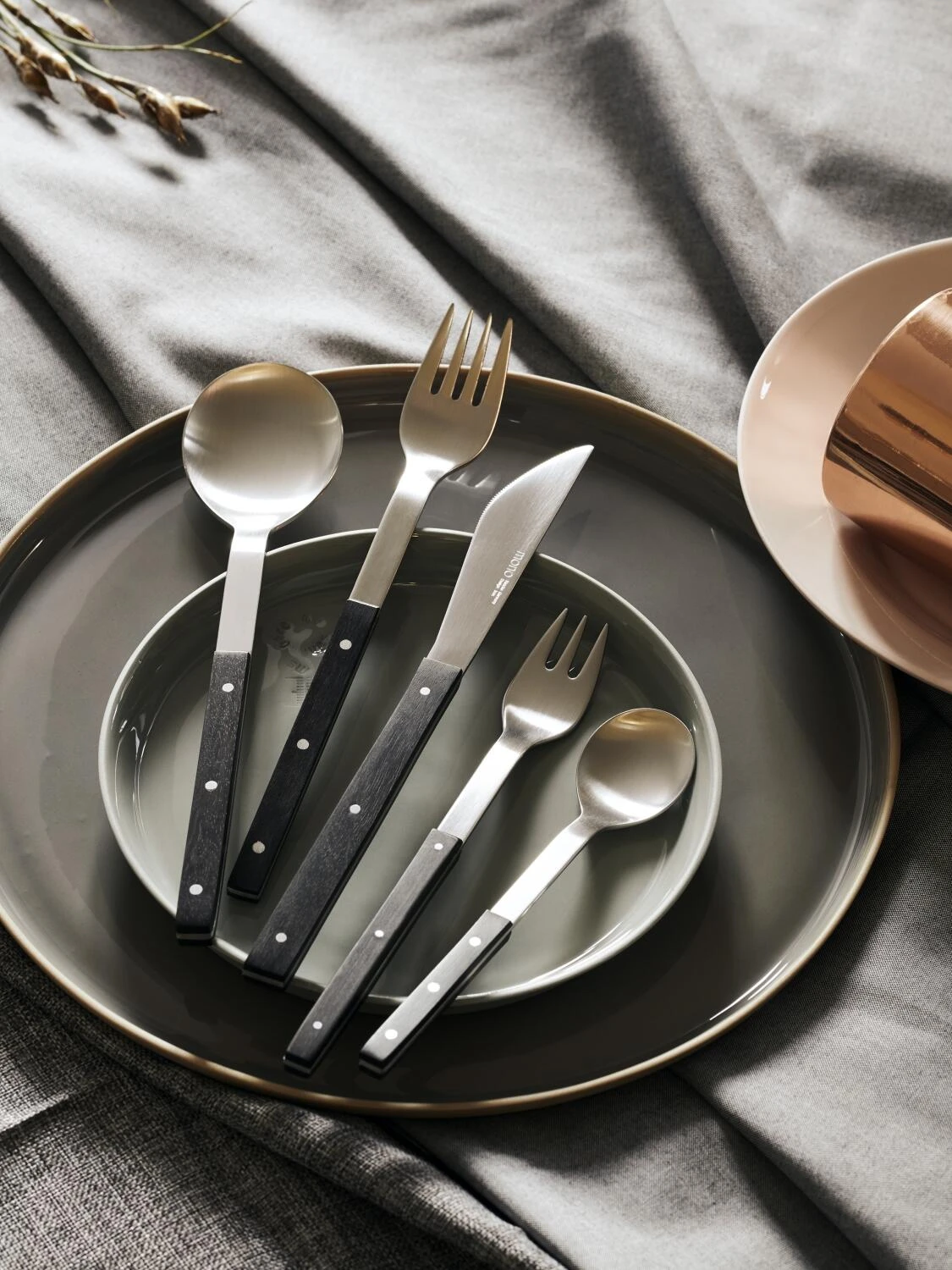 Mit der Entwicklung des Mono A Besteckes 1956 wurde der Grundstein für das Besteckprogramm und die Mono Design DNA gelegt. Neben den Klassikern von Peter Raacke (A, E, T, Oval, Petit) gehören Mono Zeug (das Neandertaler Besteck von Michael Schneider, 1995) und die Mono Ring Re-Edition (eine Zusammenarbeit von Peter Raacke und Mark Braun, 2018) zum Mono Besteck-Portfolio.