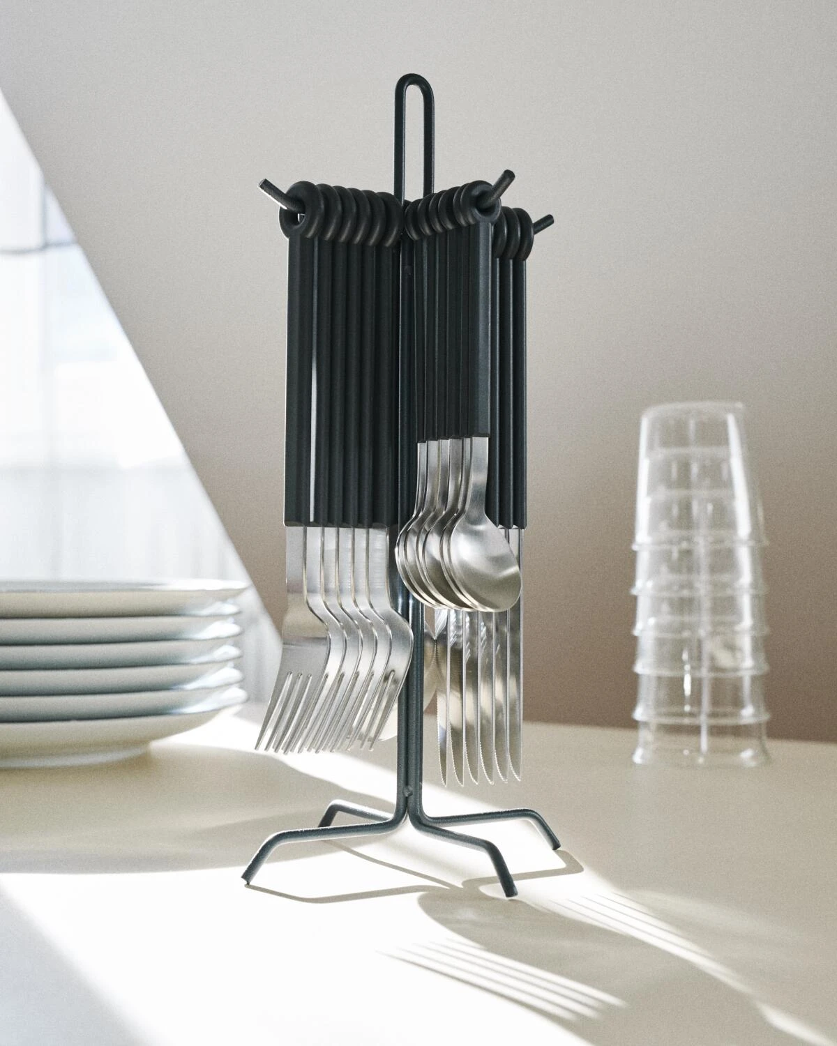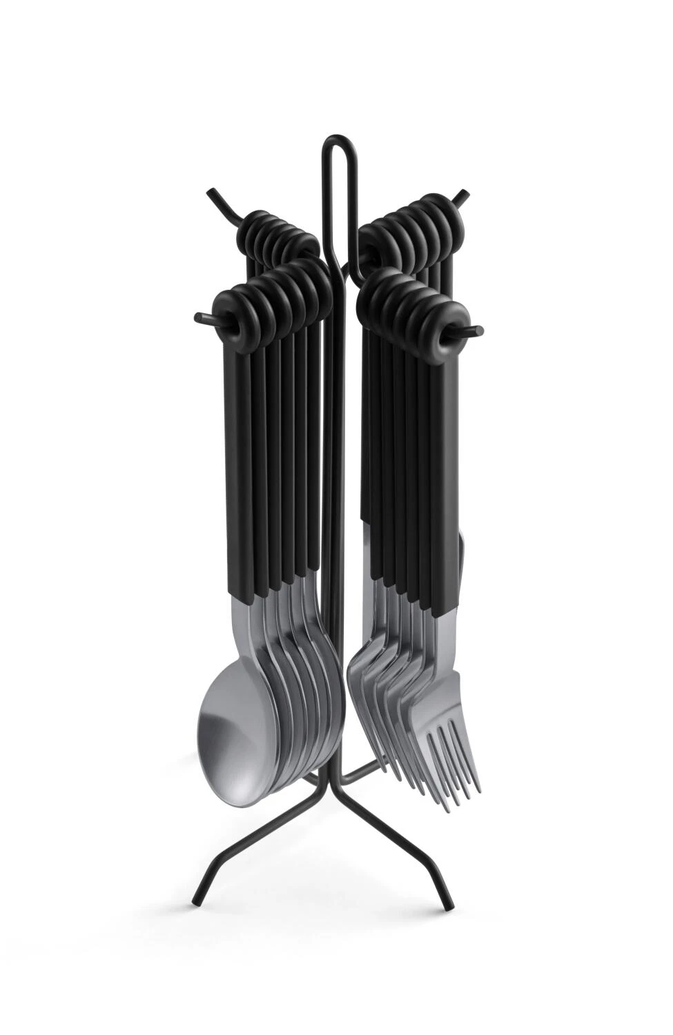 Mono Ring Besteckset in schwarz, 24tlg. mit Ständer