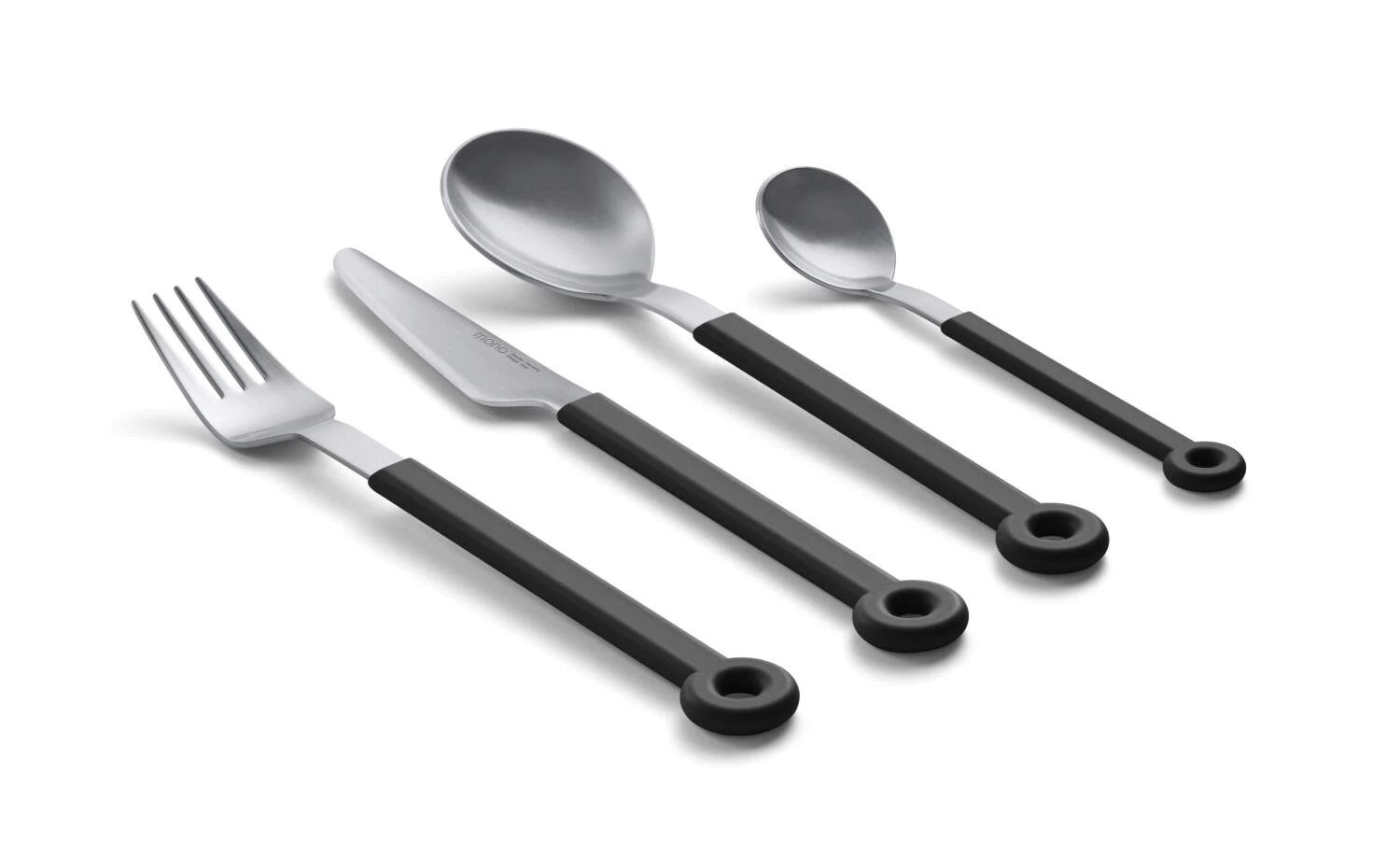 Die Idee von Peter Raacke von 1962 bleibt bei Mono Ring unverändert stark: ein Besteck, das keine Schublade braucht. Stattdessen steht es griffbereit auf dem Tisch. Der Designer Mark Braun hat den ursprünglichen Entwurf intensiv studiert und für die Wiedereinführung von Mono Ring neu interpretiert.