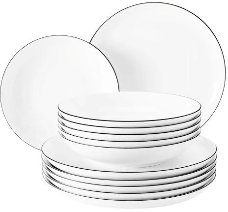 Seltmann Weiden Lido Black Line Tafelservice 12-teilig rund. Zeitloses Service für 6 Personen für den alltäglichen und besonderen Gebrauch.