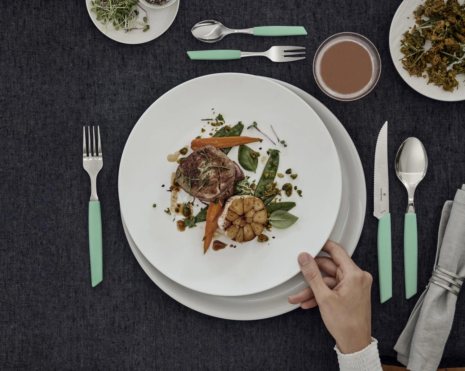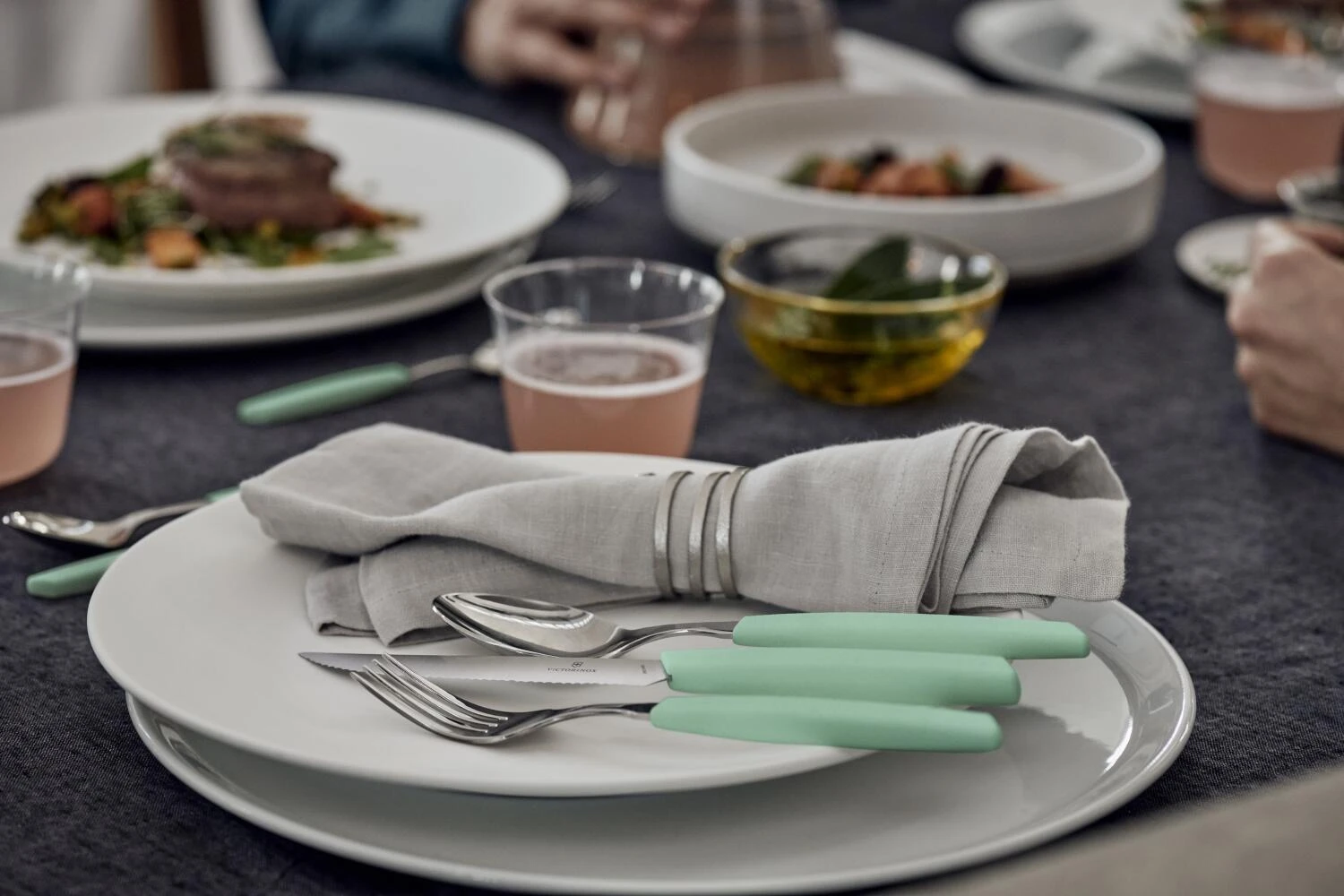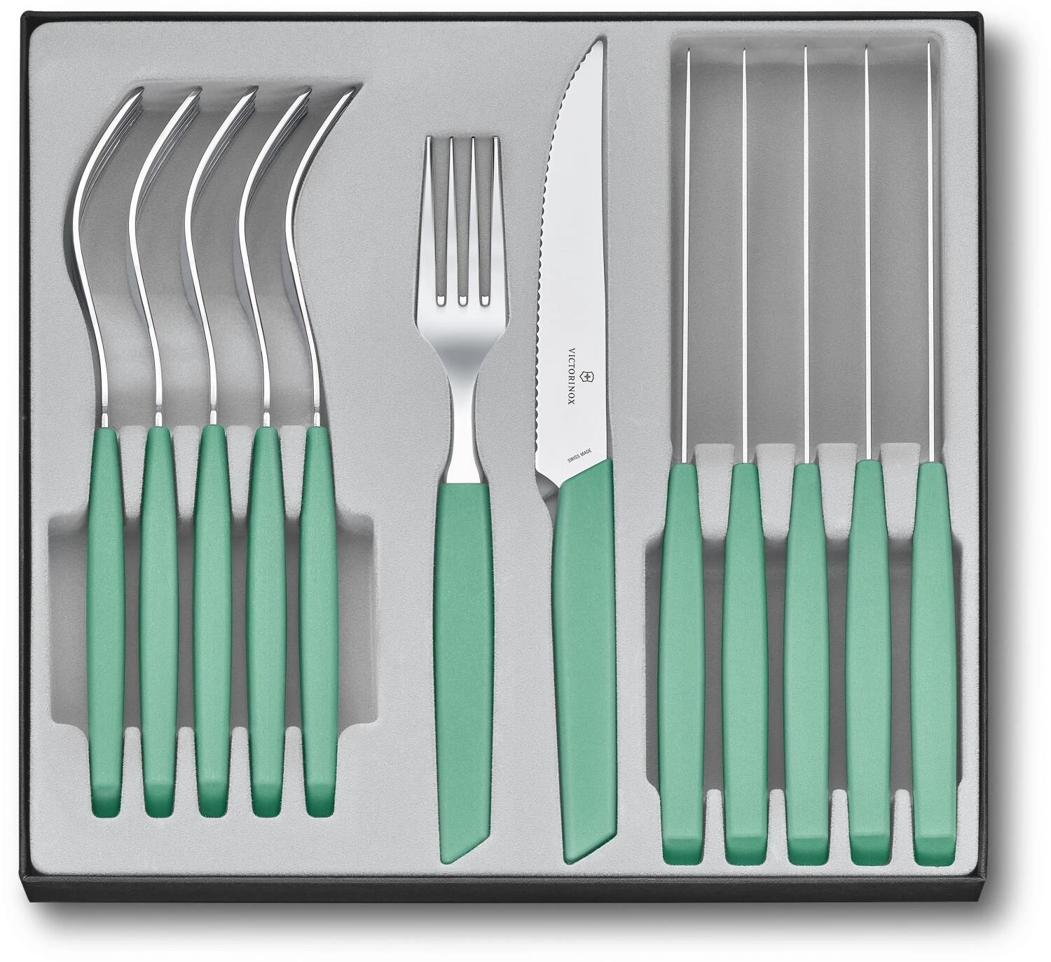 Victorinox Swiss Modern Besteck-Set mit Steakmessern, 12-teilig, minzgrün. Modernes Besteck für den alltäglichen und besonderen Gebrauch.