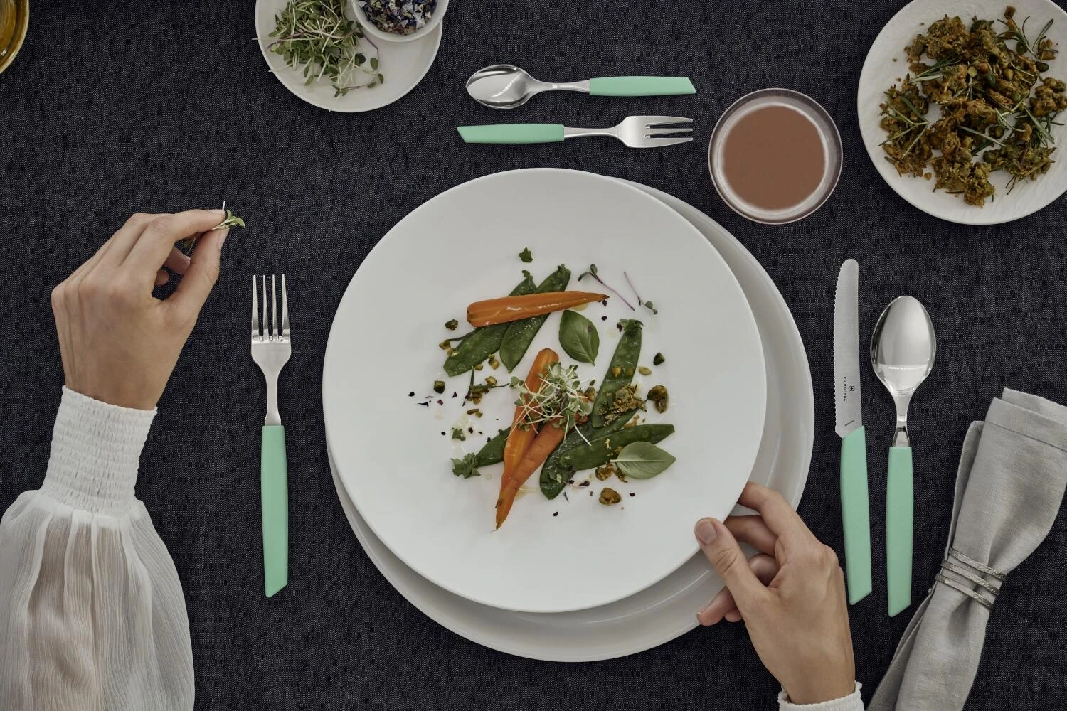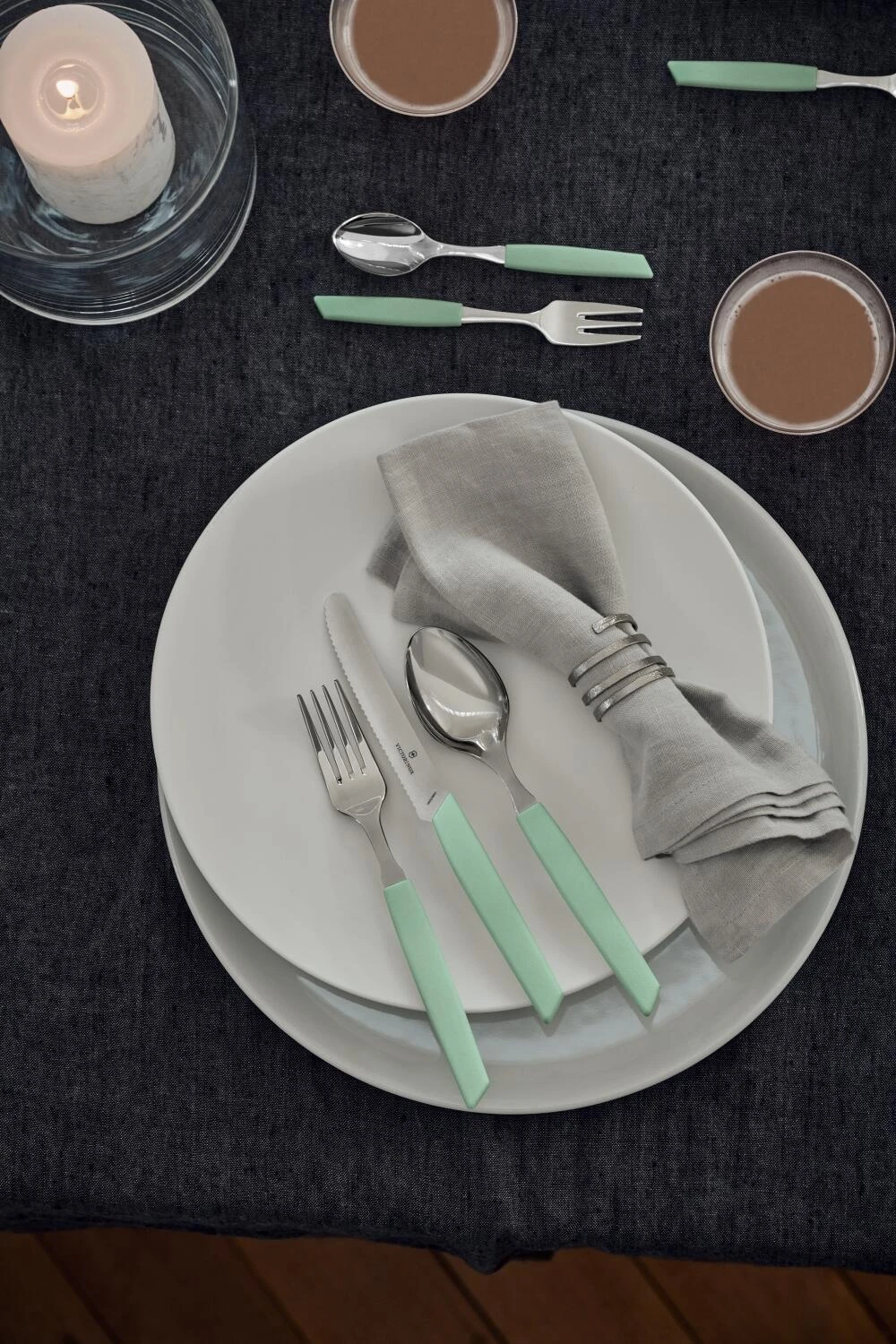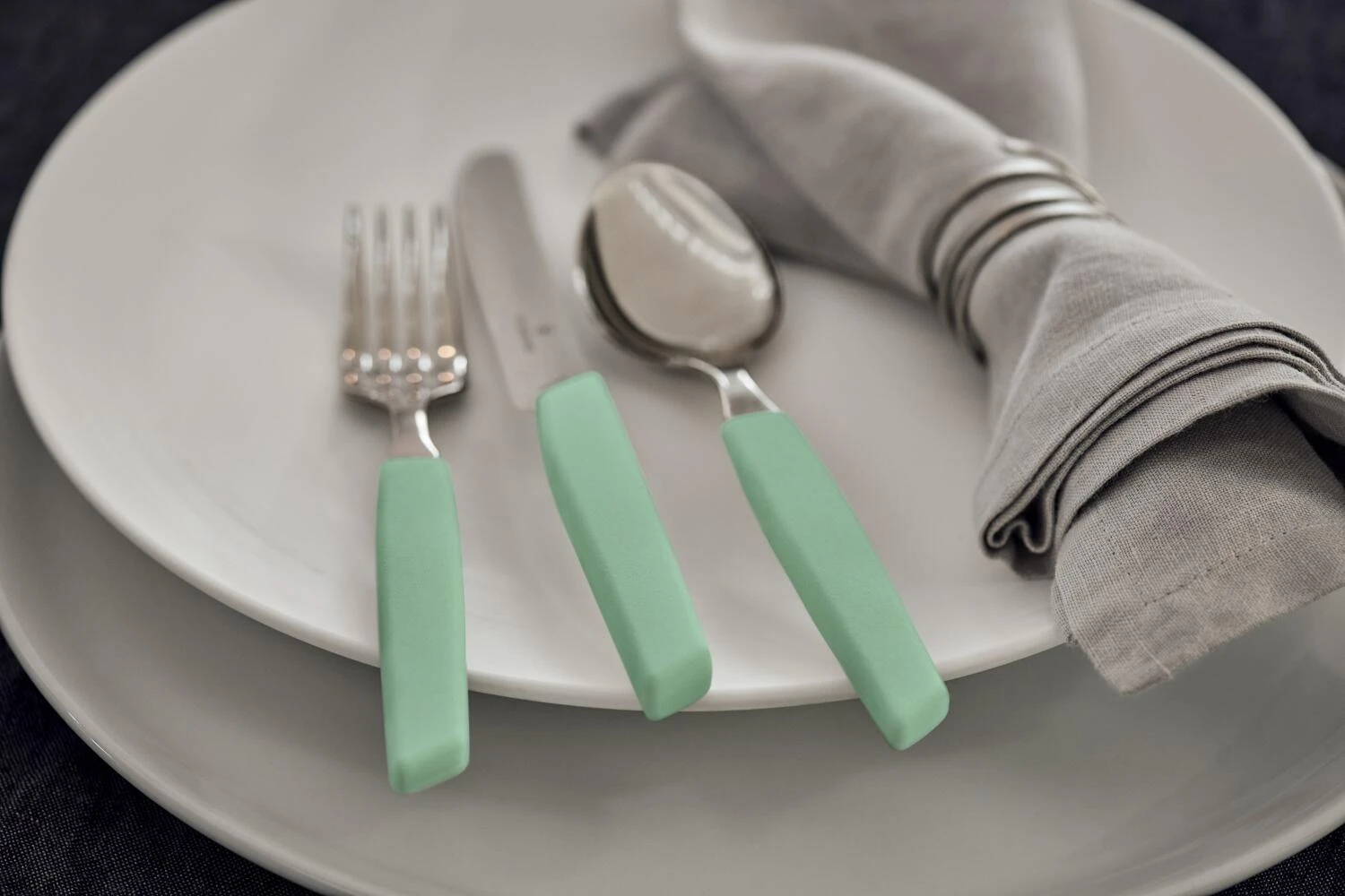Victorinox Swiss Modern Besteck-Set, 12-teilig mit Tomatenmessern, minzgrün. Modernes Besteck für den alltäglichen und besonderen Gebrauch.
