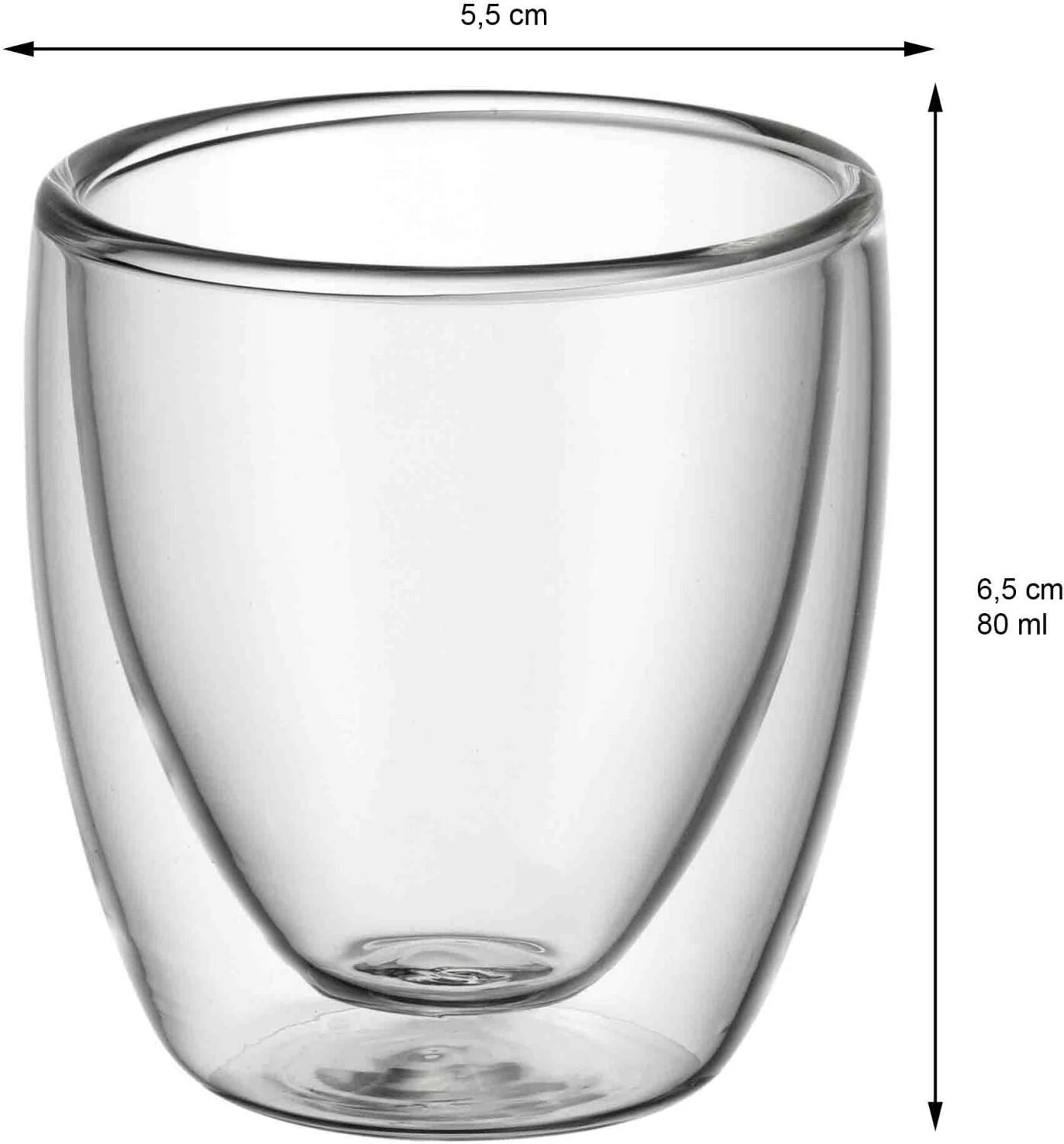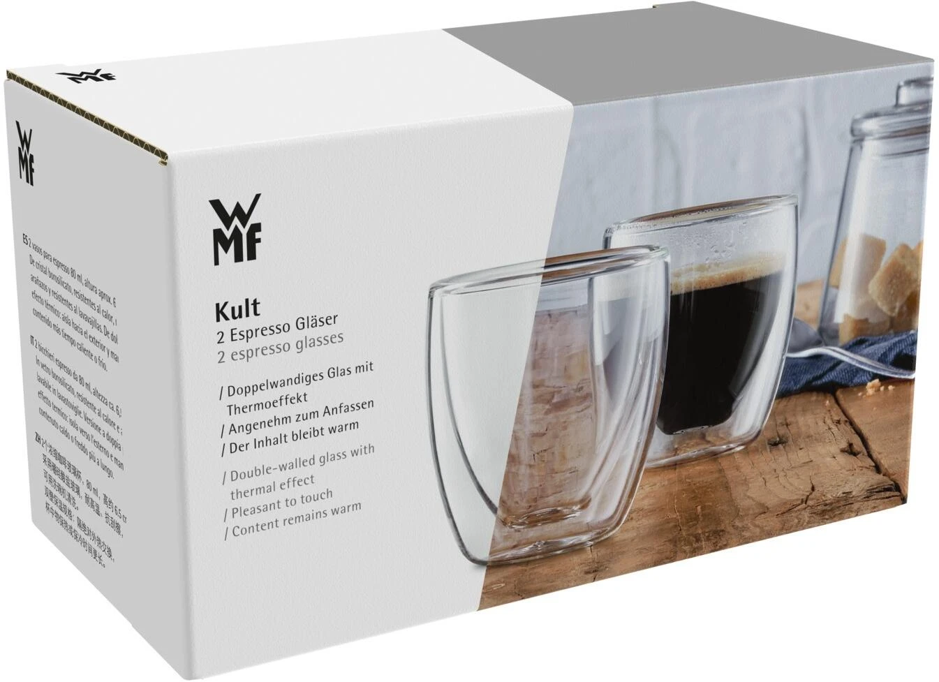 WMF Kult doppelwandige Espressotassen Glas Set 2-teilig, 80ml.